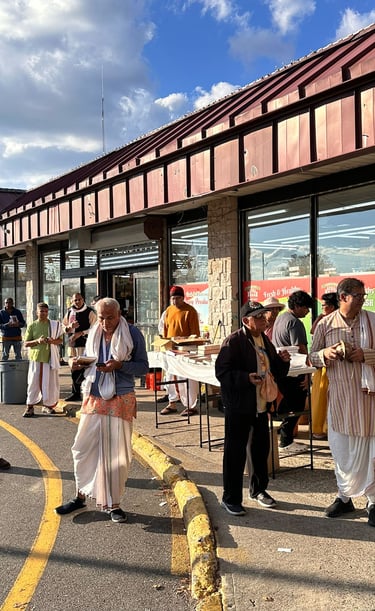 Our Vision: To awaken divine love in every heart by sharing the timeless wisdom of Krishna consciousness through Sankirtan, sacred texts, and devotional gatherings. Inspired by Srila Prabhupada’s teachings, we envision a spiritually vibrant New Jersey where communities chant, serve, and celebrate together—reviving their eternal connection with Krishna through bhakti-yoga, the Bhagavad-gita, and the Hare Krishna maha-mantra.